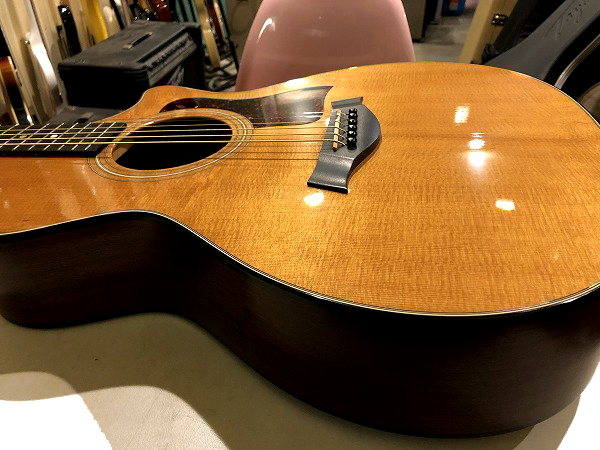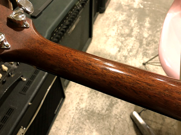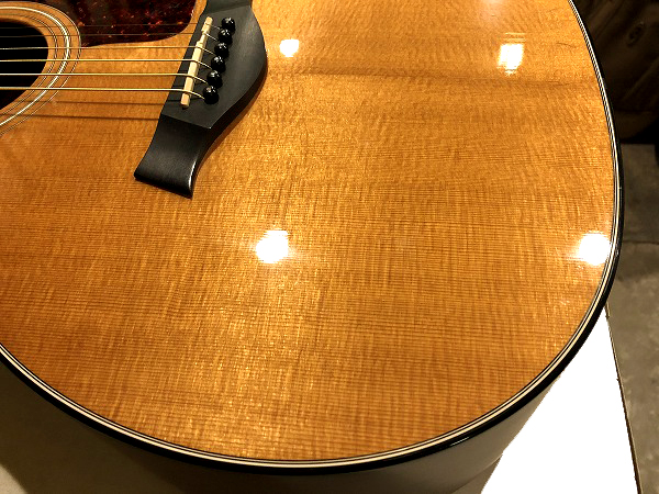 Taylorの塗装はポリ塗装なのですが、ラッカー塗装に負けないほどの極薄塗装を実現しています。