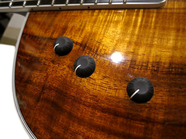 高級材としても知られる、美しいトラ杢の浮き出たHawaian Koa (ハワイアン・コア)Top仕様の