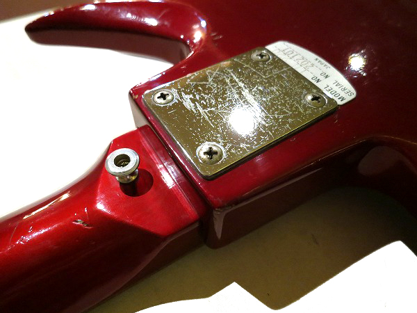 指板はローズウッドで、ネックジョイントは4点止めボルトオン仕様です。