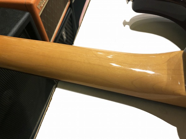 コンディションも良好です。ネック、フレット、ナット、電装系、ピックアップなどプレイコンディションは良好で、各部メンテナンス、調整、セットアップも施しておりますので、弦高もローアクションで弾きやすく、出音も良好です。ナットは入荷時より交換されており、調整処理がきちんとされておらず弦高が高くなっていましたので、再加工・再調整を施し、現在は適正な、良好な状態になっています。ナットは牛骨です。現在弦高ローアクション、出音も良好です。外観的には相応に打痕や擦り傷、小傷、使用感、経年感のあるUSED
