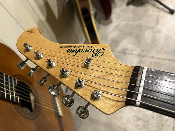 基本的には60年代仕様のJazzmasterを再現したヴィンテージライクな1本で、さすがはBacchus 日本製 ハンドメイド・クラフトシリーズの高い品質の1本に仕上がっています。ボディはアルダーでジャズマスターシェイプ、ネックはメイプルに指板はインディアン・ローズウッドと非常に良質な木材が使用され、丁寧に作られています。独自のカスタムラインの組み込み・製作により、とても完成度高く、精度高く作られており、安定した演奏性、ピッチ感、鳴り感、トーンとなっており、非常に良質な1本です。特に、良質なインディアン・ローズウッドを使用した22フレットつば出し仕様のスラブボードの影響もサウンド面では大きいかもしれません。とても瑞々しくタイトで粒立ち良くスッキリとしており、かつメイプルのハリと芯のあるサウンド、アルダーボディのバランス良く中低域もしっかりとあるサウンドのマッチング、たしかな加工と組み込みにより、抜群のトーン、演奏性の1本に仕上がっています。