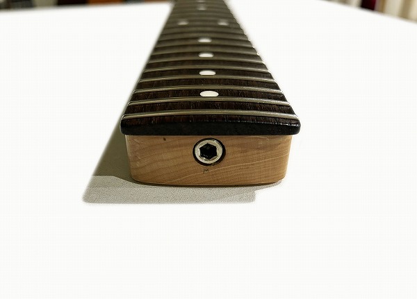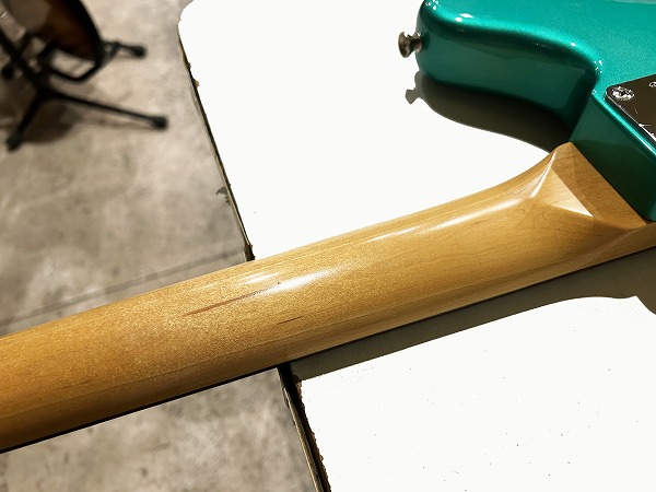 プレイコンディションは良好です。ネックは真っ直ぐに調整済で良好な状態です。ロッドはまだ余裕があります。フレットは軽度の減り、使用感は見られますが、まだ8分程度は残っており、ローアクションセッティングで出音も良好です。丁寧に磨きも入れており、光沢も取り戻しています。指板も若干の使用感、小傷はありますが、大きな減りやダメージは無く、こちらも丁寧にクリーニング、コンディショニングを行なっています。各種メンテナンス、セッティング済で、弦高ローアクションで出音良好です。現在弦高は12フレット上1弦1.2mm、6弦1.2mmで、弾きやすく出音良好です。電装系も出音、コントロール共に問題ありません。良好なプレイコンディションです。