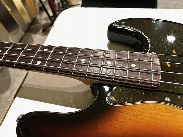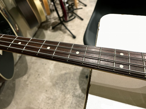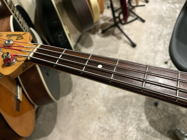 プレイコンディションは良好です。ネックは大きな反りも無く真っ直ぐで良好な状態に調整済です。ロッドもまだ若干の余裕があります。フレットも大きな減りは無く、8分程度は残っており、大きなへこみや弦溝も無く、丁寧に磨きも入れており、綺麗なコンディションになっています。指板も大きな使用感無く、減りや目立った傷も無く、とても綺麗なコンディションです。こちらも丁寧にクリーニングの上、コンディショニングも行っております。しっかりとメンテナンス、セットアップも施しておりますので、弦高はローアクションで弾きやすく、大きなビビリやつまりも無く、良好な出音です。現在弦高は12フレット上1弦1.5mm、4弦2mmです。電装系も出音、コントロール共に問題ありません。プレイコンディションは良好で問題ありません。メンテナンス、セッティング済、良好プレイコンディションですぐにそのままお使いいただけます。