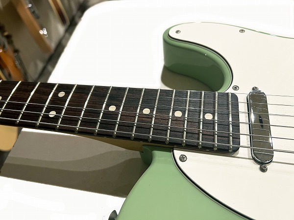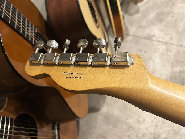 Greenカラーで、レトロでヴィンテージライクな雰囲気の良さを持ち、ネックはヘッド部はグロスですがネック裏はサテンのウレタンフィニッシュとなっており、スベスベとした弾き心地の良さを実現、ルックスの良さとプレイアビリティの良さを両立しています。ブリッジサドルは6サドルタイプで各弦オクターブ調整可能、ペグはクルーソンタイプです。ヘッド裏シリアルは「MX24*******」、MADE
