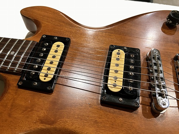 サウンドも素晴らしい1本です。かなり個性的存在のモデルですが、サウンドの方はストレートなグッドサウンドで、メイプル主体ならではのハリと芯のあるサウンド、低音もしっかりとした骨太ながらこもらないサウンド、セットネック仕様のサステインと鳴り良いサウンドに、ローズウッドの瑞々しいタイトさのあるトーンながら、メイプル主体とのマッチングで粘り気もあるトーンが魅力的です。1980年製