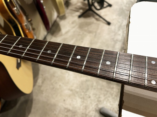 外観的にも相応に傷、使用感、経年感がある相応のプレイヤーズ・ヴィンテージ・コンディションですが、経年と使用による擦れ落ちや、光沢感の変化、ネック裏の弾き込みによる色味擦れ落ちなど、レリック感のある雰囲気抜群の格好良いルックスです。全体的に丁寧にクリーニング、磨きも入れており、綺麗なコンディションになっております。ケースは非純正ですが、ツイードタイプ・ハードケースが付属します。