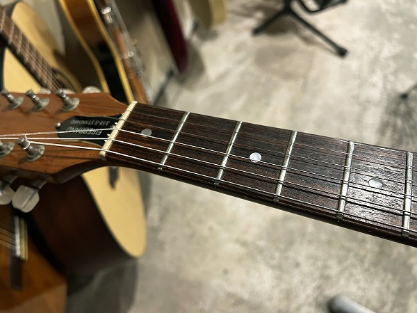 プレイコンディションは良好です。ネックは真っ直ぐに調整済で、ロッドは順反り矯正方向に大分回りは硬くなっており、微調整程度の残りです。フレットは相応に減りは見られ6分程度の残りとなっており、山はやや低くなっていますが、大きなへこみや弦溝はありません。ローアクションセッティングで出音も良好です。丁寧に磨きも入れ、光沢のある綺麗なコンディションになっています。指板も相応に使用感、若干の減りや黒ずみ、小傷は相応に見られますが、大きな減りやダメージは無く、指板も丁寧にクリーニング、コンディショニングを行なっており、綺麗な状態になっております。現在弦高は12フレット上1弦1.2mm、6弦1.5mmで、弾きやすく出音良好です。電装系は、ピックアップは断線巻き直し修理済、アウトプットジャック交換済で、現在出音、コントロール共に良好です。ポットオリジナルの為、動かすとガリの出る箇所もありますが、通常使用には問題ありません。各種メンテナンス、セッティング済で出音、演奏性良好、そのまますぐにお使いいただける、グッドプレイコンディションです。