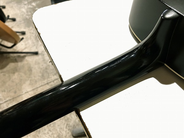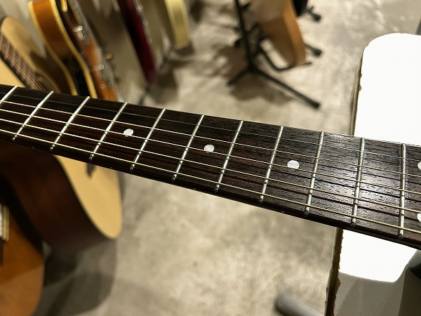 コンディションも良好です。プレイコンディション良好で、演奏性、出音良好です。ネックは真っ直ぐで、トップのふくらみ、ブリッジ浮きやネック起きもありません。ロッドもまだ余裕があります。フレットもまだ8分程度は残っており、大きな減りやへこみ、弦溝も無く、丁寧に磨きも入れ、光沢のある綺麗なコンディションです。指板も大きな減りやダメージは無く、こちらも丁寧にクリーニング・コンディショニングを行っており、綺麗なコンディションになっています。ブリッジサドルの高さも十分に残っています。弦高は12フレット上1弦2mm、6弦2.5mmとローアクションで弾きやすく、出音も良好です。各種メンテナンス、セッティング済みで、演奏性、出音共に良好のグッドプレイコンディションです。