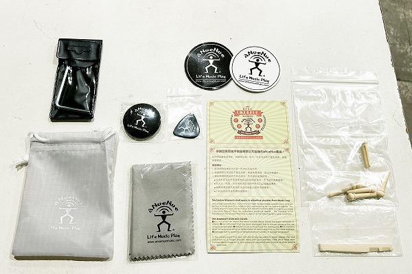 CARD、オリジナルピック、バッジ、クロス、ステッカー、巾着、調整用レンチも付属の完品です。