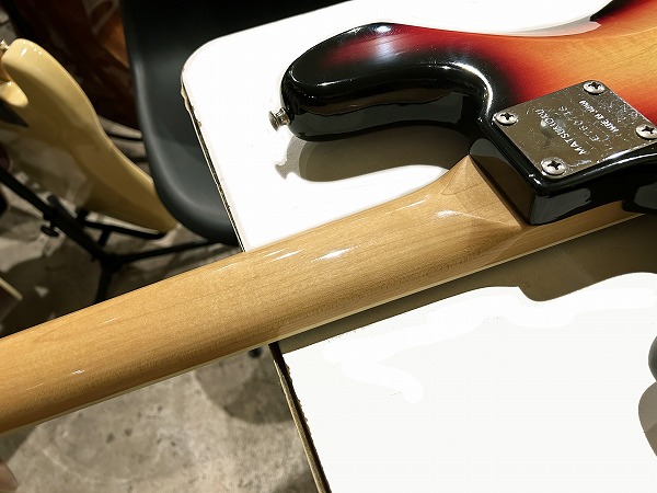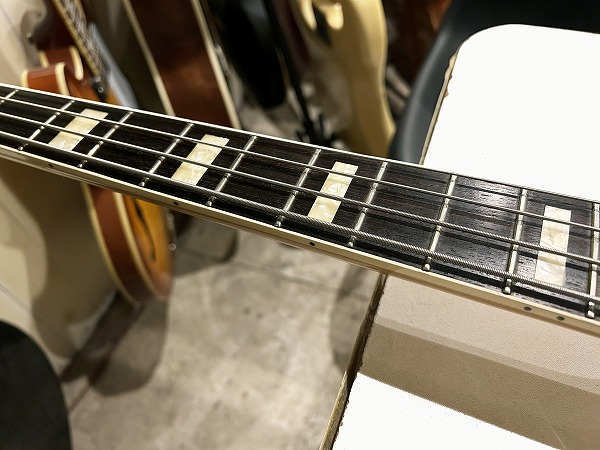 当時のマツモク工場製ならではのしっかりとした作りと再現度、経年と使用によりヴィンテージライクでグッドサウンドな1本。出力弱めの乾いたトーンで、いなたくヴィンテージライクな質感の雰囲気あるグッドトーンです。重量4.37kg(デジタルはかり計測)とやや重いですが、その分タイトな低音と芯のあるしっかりとしたサウンドです。良質ジャパン・ヴィンテージ・ベースです。