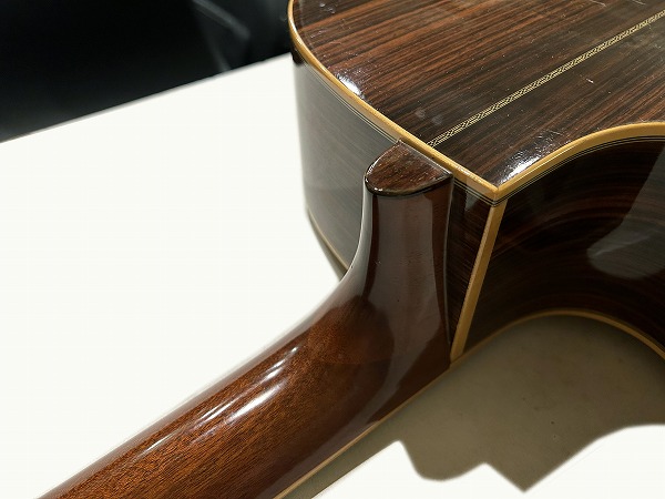 外観的には、経年によりクリアー塗装に白濁が出ています。サイド、バックのクリアー塗装に白濁がかなり出ているほか、ヘッド部にも白濁が出ています。トップはラッカー塗装の為白濁は出ていませんが、相応に小傷、擦り傷、使用感はあります。その他全体的に小傷、擦り傷、金属パーツのくすみなどあり、使用感、経年感はありプレイヤーズコンディションです。木部クラックや大きな塗装剥がれやひどいダメージ、演奏上の問題等はありません。全体的に丁寧にクリーニング、磨きは入れており、艶感も大分取り戻し綺麗なコンディションになっております。ケースはハードケースが付属します。その他当時付属タグと、資料用コピー(同型の時代違いで全く同じスペックではありませんが参考資料)が付属します。