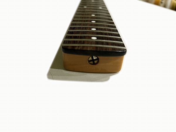 プレイコンディションは良好です。相応に使用感、摩耗点等ありますが、メンテナンス、セットアップ済で、演奏性、出音良好です。ネックは反りも無く真っ直ぐで良好な状態に調整済です。ロッドは元々調整幅は狭いですが、まだ微調整程度の若干の余裕があります。フレットは相応に減りが見られ、6分~7分程度の残りとなっており、軽度のへこみも見られますが、大きな減りや弦溝は無く、弦高ローアクションセッティング済で大きなビビリやつまりも無く、出音良好です。フレットは丁寧に磨きも入れており、光沢のある綺麗なコンディションになっています。指板も相応に小傷、軽度の減り、使用感はありますが、大きな減りや使用上の問題はなく、指板も丁寧にクリーニングの上、コンディショニングも行っており綺麗なコンディションです。全体的にしっかりとメンテナンス、セットアップも施しております。現在弦高は12フレット上1弦1.2mm、6弦1.2mmです。電装系も出音、コントロール共に全く問題ありません。メンテナンス、セッティング済、プレイコンディション良好ですぐにそのままお使いいただけます。