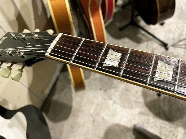 プレイコンディションは良好です。ネックは反りも無く真っ直ぐで良好な状態です。ロッドは大分回りは硬くなっていますが、順反り矯正微調整程度の残りはあるかと思います。フレットは相応に減りは見られますが、まだ7分程度は残っており、大きなへこみや弦溝はありません。丁寧に磨きを入れ、光沢も取り戻しています。指板も相応に使用感、軽度の減りはありますが、大きな減りやダメージは無く、使用上も問題ありません。指板も丁寧にクリーニングの上、コンディショニングも行っており綺麗なコンディションになっています。