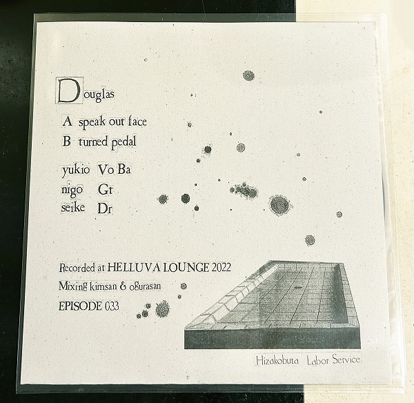 70s~ Punk/Post Punk系重要バンドをリリースし続けるレーベルEpisode Soundsより、神戸を拠点に活動するDouglasの初の単独7"がリリースされました。、まるで呪文のように繰り返されるヴォーカル、ダークな反復系ポストパンクサウンド。しかしその質感は生のバンド感、ウォーム感があり、ミニマルですがデジタル的ではない、アート的で先鋭的というよりはシンプルな根源的な祈りの様な、クールながら祝祭の様な高揚感と没入感も魅力の、非常に格好良い1枚です。