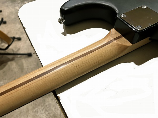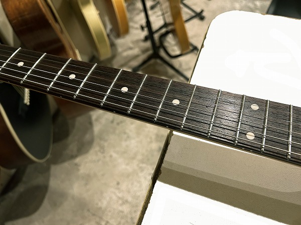 プレイコンディションは良好です。ネックは反りも無く真っ直ぐで良好な状態に調整済です。ロッドもまだ余裕があります。フレットはステンレスですのでほぼ減り無く10割がた残っています。弦高ローアクションセッティング済でビビリやつまりも無く、出音良好です。指板も若干の使用感程度で大きな減りや傷も無く、丁寧にクリーニングの上、コンディショニングも行っており綺麗なコンディションです。全体的にしっかりとメンテナンス、セットアップも施しております。現在弦高は12フレット上1弦1.2mm、6弦1.5mmと非常にローアクションで抜群の弾きやすさです。電装系も出音、コントロール共に全く問題ありません。メンテナンス、セッティング済、プレイコンディション良好ですぐにそのままお使いいただけます。