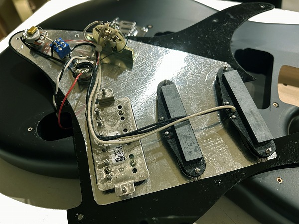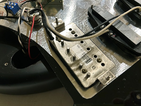 HAF-5T-B4-HRY BRIDGE ハムバッカー、センターとフロントは型番不明ですが、カバーにdragonflyのロゴあり、ポールピース大きめのシングルのSSHレイアウトです。ミニスイッチはリアのタップスイッチで、シングルサウンドも可能です。