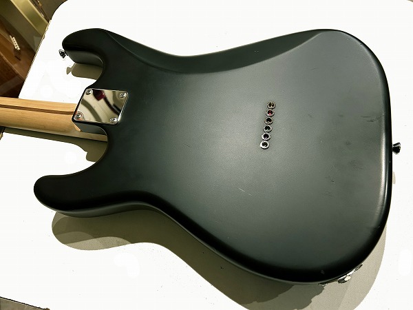外観的には 若干の打痕、擦り傷など小傷、使用感は相応にあり、小さな塗装剥がれもいくつか見られ、その部分は黒でタッチアップされ目立たない様になっています。また、マットブラックのフィニッシュの為、使用により光沢感の変化が出ている箇所もあります。大きなひどく目立ったダメージは無く、ハードウェアやフレットの光沢もあり、全体的にはまだまだ良好なグッドコンディションです。全体的に丁寧にクリーニングも行なっており、綺麗なコンディションになっています。ケースは純正ギグバッグが付属します。フロントポケットのジッパーの持ち手の金具が欠損しています。