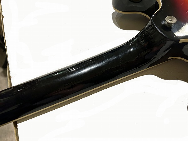 プレイコンディションは良好です。ネックは反りも無く真っ直ぐで良好な状態です。ロッドもまだ余裕があります。フレットは若干の使用感程度でまだ8分程度は残っており、大きなへこみや弦溝もありません。弦高ローアクションセッティング済でビビリやつまりも無く、出音良好です。フレットは丁寧に磨きも入れており、光沢も取り戻しています。指板も若干の使用感、小傷程度で大きなダメージ、大きな減りは無く、使用上も問題無く、指板も丁寧にクリーニングの上、コンディショニングも行っており綺麗なコンディションになっています。全体的にしっかりとメンテナンス、セットアップも施しております。現在弦高は12フレット上1弦1.5mm、6弦1.5mmです。電装系も出音、コントロール共に全く問題ありません。メンテナンス、セッティング済、プレイコンディション良好ですぐにそのままお使いいただけます。
