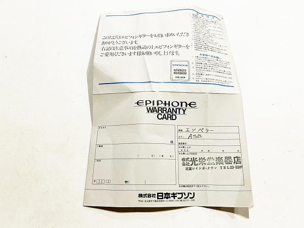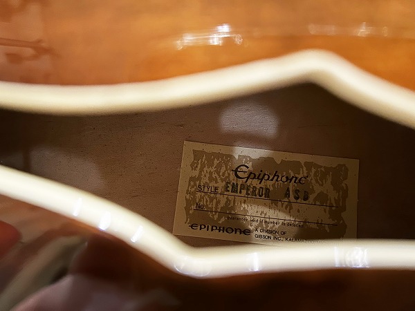 Epiphone Japan 1984年製 EMPEROR ASB、ベージュラベル マツモク工場製、ジャパン・ヴィンテージとしての評価・人気も高く、海外市場では30万オーバーで取引されているモデルです。