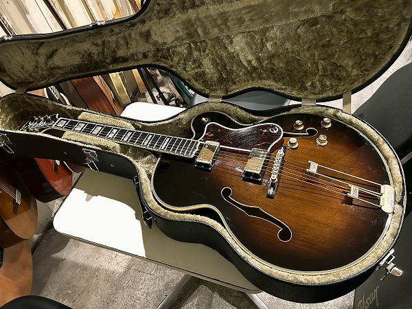 コンディションは良好です。相応に使用感、経年感、摩耗点などはありますが、メンテナンス、セットアップ済で、弦高ローアクション、弾きやすく出音良好の、グッドプレイコンディションです。外観的には相応に小傷、金属パーツのくすみ、メッキ剥がれ、使用感、経年感はあります。全体的に丁寧にクリーニング、磨きも行なっており綺麗なコンディションになっています。良い雰囲気のヴィンテージライクなルックスです。ケースはハードケースが付属しますが、当時の純正品か非純正品か不明です。その他当時付属書類も付属します(折れあります)。