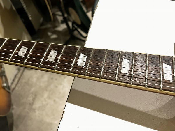 プレイコンディションは良好です。ネックは反りも無く真っ直ぐで良好な状態に調整済です。ロッドもまだ十分に余裕があります。フレットも若干の使用感程度でまだ9分程度は残っており、大きなへこみや弦溝もありません。丁寧に磨きも入れており、光沢も取り戻しており、まだまだピカピカです。弦高ローアクションセッティング済でビビリやつまりも無く、出音良好です。指板も大きな減りや傷は無く、指板も丁寧にクリーニングの上、コンディショニングも行っており綺麗なコンディションになっています。全体的にしっかりとメンテナンス、セットアップも施しております。現在弦高は12フレット上1弦1.5mm、6弦1.5mmです。電装系も出音、コントロール共に全く問題ありません。メンテナンス、セッティング済、プレイコンディション良好ですぐにそのままお使いいただけます。