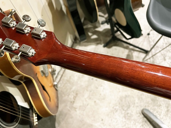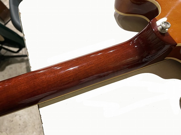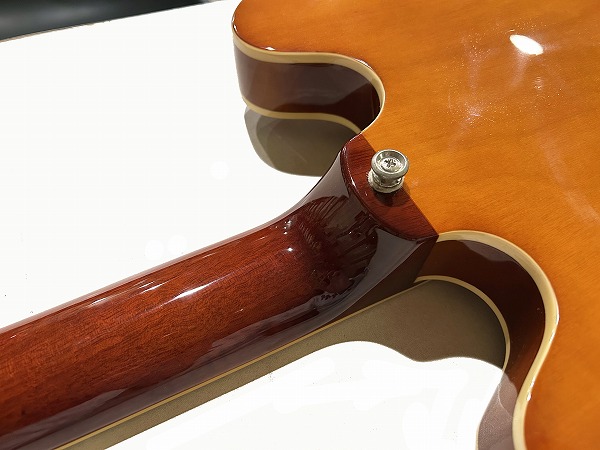 演奏性、サウンドの方もグッドです。メイプル主体のハリのある抜けの良いトーンですが、ネックがしっかりとしたシェイプのマホガニーというのもあり、しっかりとファットさと鳴り感もあります。ミニハムのサウンドはは通常ハムよりブリリアントでハイ立ち良くシャープめですが、ハムならではのスイートさ、丸みもあり、上記の本体のサウンドとセミアコのほど良いエアー感とあいまって、このモデルならではの個性を持ったサウンドを奏でます。演奏性も非常に良好で、この価格帯でセミアコ、この演奏性、サウンドはやはり非常にクオリティが高いと言えるでしょう。