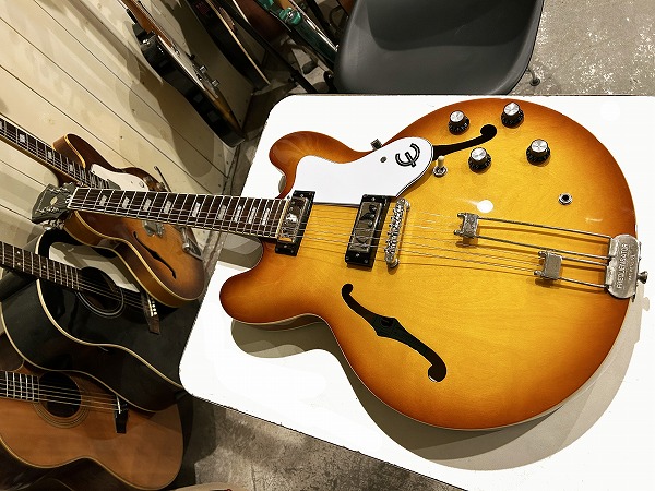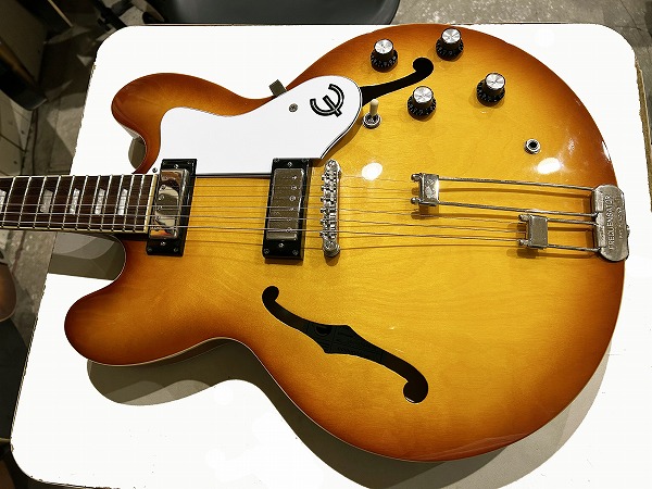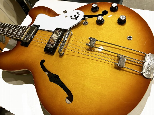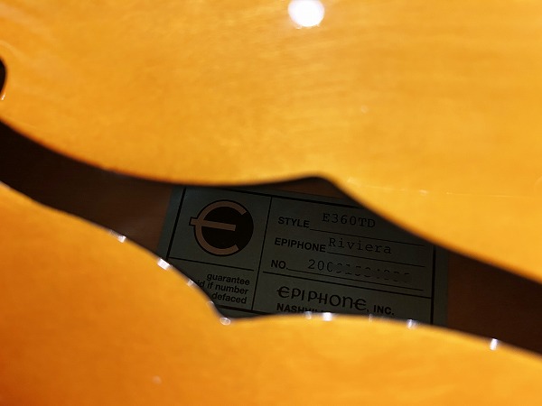 Epiphone Riviera E360TD Royal Tan 美品の1本が入荷しました。長い歴史を誇り様々なミュージシャンに愛されてきたリヴィエラの現在のEpiphoneによるコストパフォーマンスモデル。リーズナブルながらしっかりとリヴィエラの魅力を踏襲した1本です。新品通常価格¥96,800-程度のモデルです。