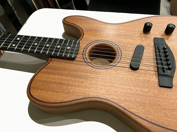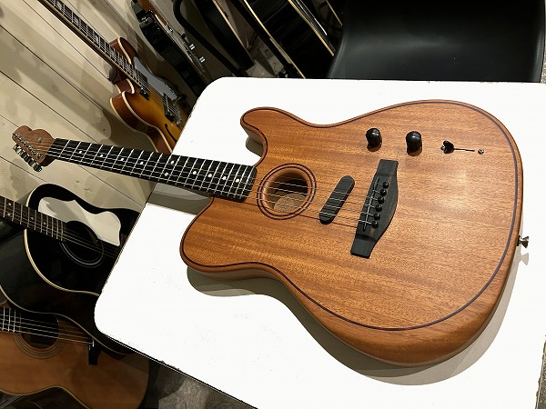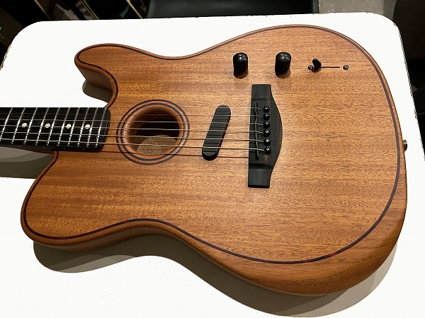 Fender American Acoustasonic Telecaster All-Mahogany Natural 美品 良好の1本が入荷しました。エレキギターのプレイアビリティでアコースティックギターのサウンドとハイブリッドサウンドを実現した、革新的人気モデルアコースタソニックの、オールマホガニー仕様のテレキャスタータイプです。メーカー希望小売価格¥297,000-のモデルです。