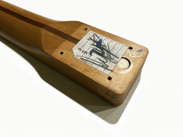 DuncanのSTR-3 Quater Pound Teleを搭載。こちらもパワー感のあるタイプでかつローミッドが効いており、かつハイもブリリアントで、バランス、マッチングも最高です。いずれもハイパワーながらトーンテイスト自体はドライでヴィンテージライクというスタイルで、本体とのマッチングが抜群です。枯れたいなたさ、まとまりの良さもしっかりあり、クリーンの味わい、質感も非常に良いですし、歪ませた時も耳に痛くない、硬さの無い、スイートでミッド感もありながら、しっかりとドライブ感のある気持ちの良いクランチ感です。ハイパワータイプですので深めの歪みにも対応しますが、あくまでクラシカルな雰囲気を残しています。カスタムされた方はよく分かってらっしゃる方で、拘りを持ってカスタムされたのだなという感じの素晴らしいマッチングに仕上げられた1本です。ヘッド裏シリアルナンバーは「AMXN7*****」で1997年製の1本です。