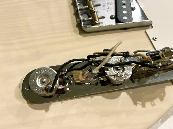 最上質の極上の木材、素材で肝入りで丁寧に製作されたこの1本は、やはりそのサウンドも極上です。鳴り良く響き良く、かつアッシュのタイトで引き締まったサウンドとファットで芯のあるサウンド、メイプルネックのハリのあるトーンと、粘り気もあるトーン、極薄塗装の抜けの良さと、カラッとしたブリリアントさも手伝い、ブライトかつファットで響きの良い極上テレキャスターサウンドを生み出しています。さすがは個人コレクション入りしただけある肝入りの1本です。