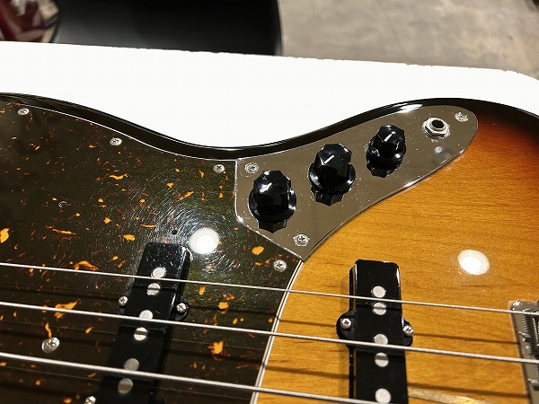 クラシカルな1962年仕様のヴィンテージスタイルを再現したFender Japan によるJazz Bassで、その高い再現度と本格的な仕様、しっかりとした作りは流石です。ボディはしっかりとアルダーを使用した上位モデルで、ネックはメイプルのローズウッド指板、ブリッジサドルはヴィンテージライクなスパイラルサドル、ペグはオープンバック、カラーは2トーン・サンバーストにべっ甲柄ピックガードを搭載、ピックアップはUS製のJB