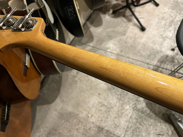 プレイコンディションは良好です。ネックは大きな反りも無く真っ直ぐで良好な状態に調整済です。ロッドもまだ若干の余裕があります。フレットも大きな減りは無く、8分程度は残っており、大きなへこみや弦溝も無く、丁寧に磨きも入れており、綺麗なコンディションになっています。指板も大きな使用感無く、減りや目立った傷も無く、とても綺麗なコンディションです。こちらも丁寧にクリーニングの上、コンディショニングも行っております。しっかりとメンテナンス、セットアップも施しておりますので、弦高はローアクションで弾きやすく、大きなビビリやつまりも無く、良好な出音です。現在弦高は12フレット上1弦1.5mm、4弦2mmです。電装系も出音、コントロール共に問題ありません。プレイコンディションは良好で問題ありません。メンテナンス、セッティング済、良好プレイコンディションですぐにそのままお使いいただけます。
