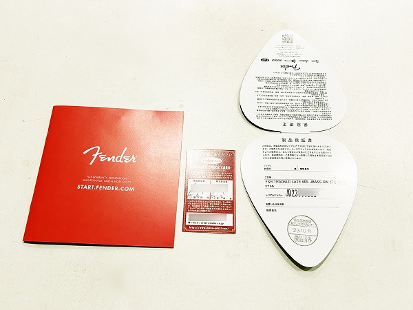 外観的にもほぼ新同品に近いコンディションで、目立った傷、ダメージは一切ありません。試演、保管時のごく微細な使用感程度です。ピックガードの保護フィルム、ピックアップ、ペグの保護フィルムもまだ付いています。ケースは純正ソフトケース、購入当時の付属書類も付属します。
