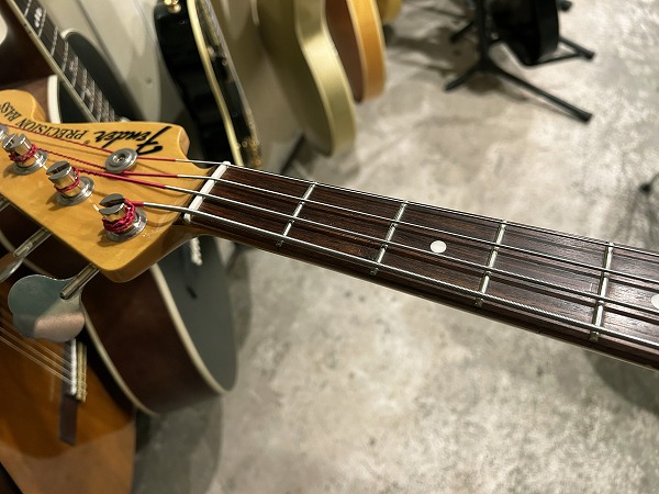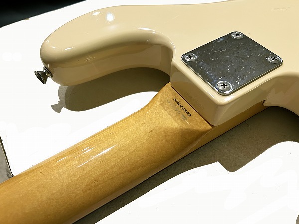 プレイコンディションは良好です。ネックは大きな反りも無く真っ直ぐで良好な状態に調整済です。ロッドはまだ余裕があります。フレットは若干の使用感はありますがまだ7分〜8分程度は残っており、大きなへこみや弦溝も無く、さらに丁寧に磨きも入れており、光沢のある綺麗なコンディションになっています。指板も若干の小傷、使用感はありますが、大きな減りやダメージ、使用上の問題は無く、こちらも丁寧にクリーニングの上、コンディショニングも行っておりとても綺麗なコンディションになっています。しっかりとメンテナンス、セットアップも施しておりますので、弦高はローアクションで弾きやすく、大きなビビリやつまりも無く、良好な出音です。現在弦高は12フレット上1弦1.5mm、6弦2mmです。電装系も出音、コントロール共に問題ありません。プレイコンディションは良好で問題ありません。メンテナンス、セッティング済、良好プレイコンディションですぐにそのままお使いいただけます。