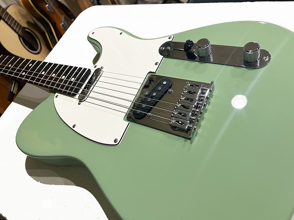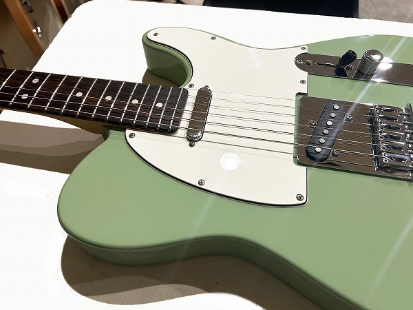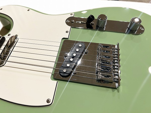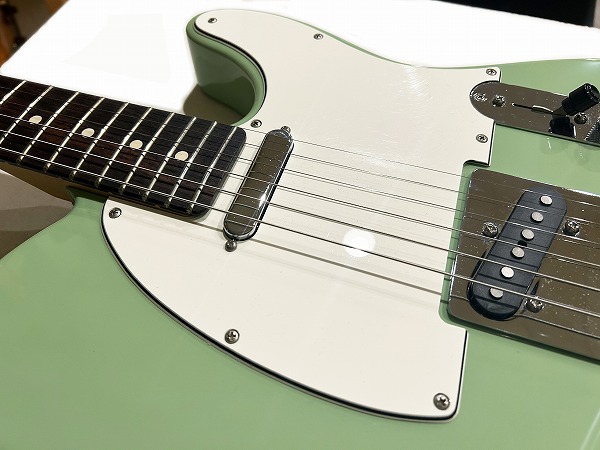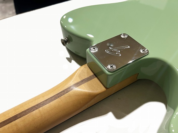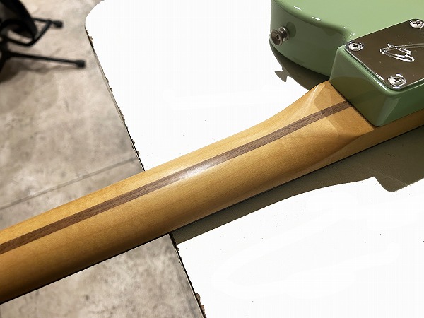 Greenカラーで、レトロでヴィンテージライクな雰囲気の良さを持ち、ネックはヘッド部はグロスですがネック裏はサテンのウレタンフィニッシュとなっており、スベスベとした弾き心地の良さを実現、ルックスの良さとプレイアビリティの良さを両立しています。ブリッジサドルは6サドルタイプで各弦オクターブ調整可能、ペグはクルーソンタイプです。ヘッド裏シリアルは「MX24*******」、MADE