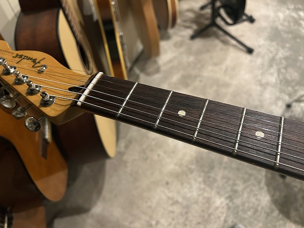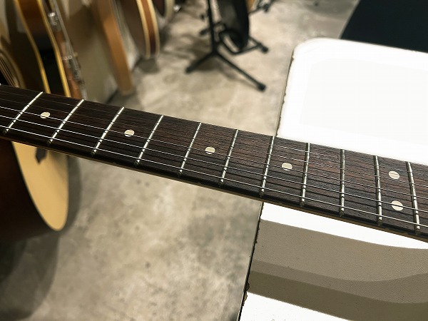 プレイコンディションは非常に良好です。ネックは真っ直ぐに調整済で良好な状態です。ロッドもまだ余裕があります。フレットも大きな減りや使用感は無く、9割がた残っており、ローアクションセッティングで出音も非常に良好です。丁寧に磨きも入れており、光沢のある美品コンディションです。指板もあまり使用感無く、大きな減りや傷も無く、こちらも丁寧にクリーニング、コンディショニングを行なっており非常に綺麗なコンディションです。各種メンテナンス、セッティング済で、弦高ローアクションで出音良好です。現在弦高は12フレット上1弦1.2mm、6弦1.5mmで、非常に弾きやすく出音良好です。電装系も出音、コントロール共に問題ありません。非常に良好なグッドプレイコンディションです。