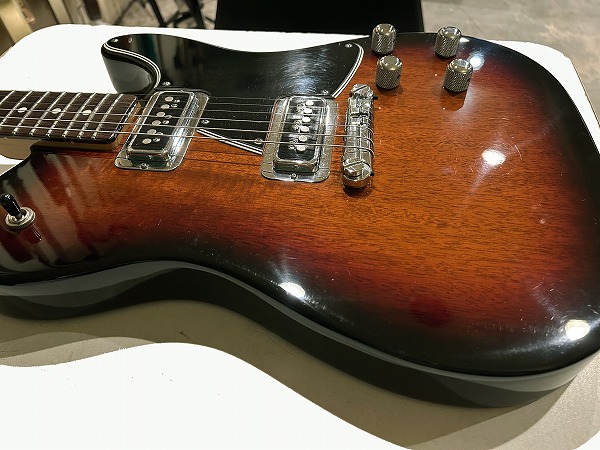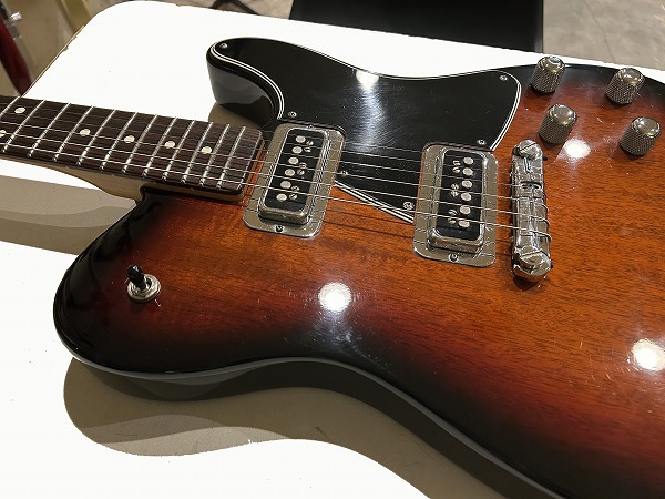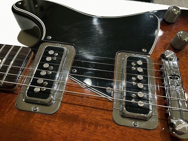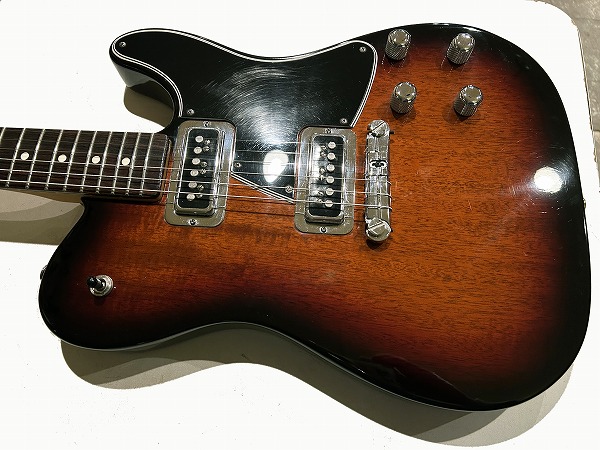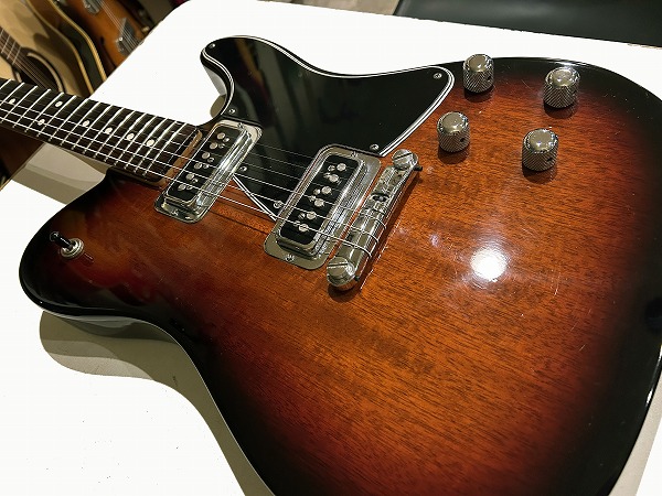ルックスも素晴らしく格好良くまとまっています。デュアルモンドPUやクロームパーツのルックスにオリジナルシェイプのピックガード、赤味のあるサンバーストカラーにブラックのマッチングヘッド仕様、ルックス的にもGretsch+Femderを思わせるルックスです。サウンド、ルックス共にオリジナリティ溢れながら、トラディショナル感もしっかりとある素晴らしい1本です。