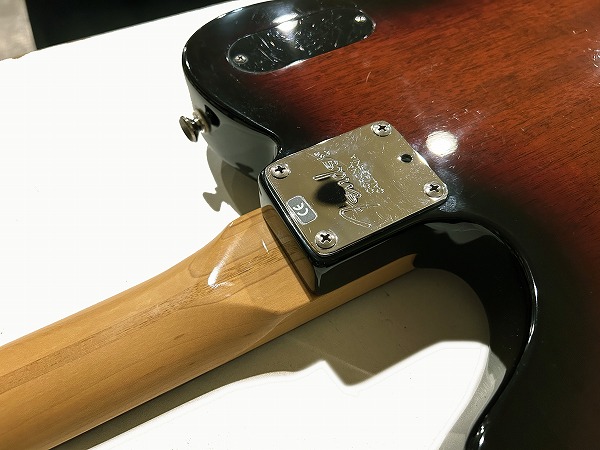 基本はテレキャスタースタイルを持ちながら、ボディはFenderでは珍しいホンジュラス・マホガニーをチャンバー仕様で採用、ネックはメイプルのローズウッド指板スラブボード仕様、4点止めボルトオンジョイントで、ネック角調整可能なマイクロティルト仕様です。ネックシェイプはモダンCシェイプ、フレットはミディアムジャンボタイプを搭載し、弾きやすさや安定したピッチ、サステインを確保しています。ブリッジはストップテイルピースタイプですが、WilkinsonのGTB
