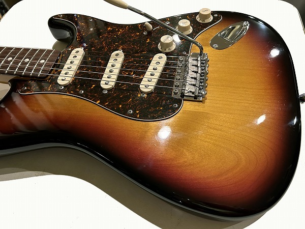 コンディションも良好です。相応に若干の使用感、摩耗点等はありますが、ネック、フレット、ナット、電装系、ピックアップなど、プレイコンディションは全て良好で、各部メンテナンス、調整、セットアップも施しておりますので、弦高もローアクションで弾きやすく、出音も良好です。外観的にも軽度な小傷、使用感はありますが、大きな目立ったダメージは無く、傷も少なく、年式を考慮するとまだまだ美品と言って良いグッドコンディションです。丁寧にクリーニング、磨きも入れており、塗装の光沢やフレットの光沢なども取り戻し、艶のある綺麗なコンディションです。ケースはFenderブラウン・トーレックスハードケースが付属します。