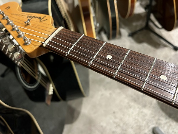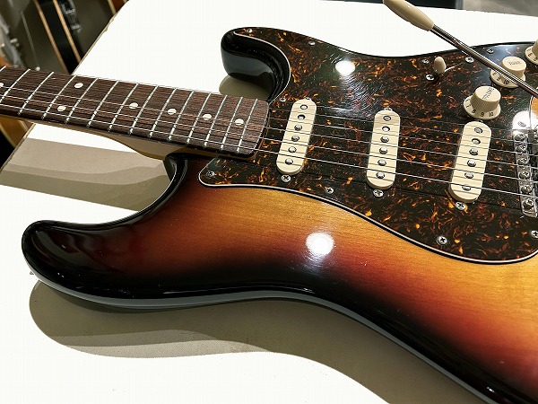 外観的にも軽度な小傷、使用感はありますが、大きな目立ったダメージは無く、傷も少なく、年式を考慮するとまだまだ美品と言って良いグッドコンディションです。丁寧にクリーニング、磨きも入れており、塗装の光沢やフレットの光沢なども取り戻し、艶のある綺麗なコンディションです。ピックガードは交換されており、現在は3プライのべっ甲タイプが搭載されています。オリジナルのピックガードは付属しません。ケースはFenderブラウン・トーレックスハードケースが付属します。