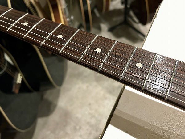 コンディションは良好です。ネックは反りも無く真っ直ぐで良好な状態です。ロッドはまだ余裕がありますので今後の調整も可能です。フレットは相応に減りや使用感は見られますが大きな減り無くまだ7分程度は残っており、ごく軽度のへこみも見られますが、大きなへこみや弦溝も無く、丁寧に磨きも入れており、光沢も大分取り戻し綺麗なコンディションです。指板も同様で、相応に小傷、使用感はあるものの、大きな減りや目立った傷は無く、こちらも丁寧にクリーニングの上、コンディショニングも行っており、綺麗なコンディションです。各部良好なコンディションで、さらにしっかりとメンテナンス、セットアップも施しておりますので、弦高はローアクションで弾きやすく、ビビリやつまりも無く、良好な出音です。現在弦高は12フレット上1弦1.5mm、6弦1.8mmです。プレイコンディションは非常に良好で問題ありません。メンテナンス、セッティング済、良好プレイコンディションですぐにそのままお使いいただけます。