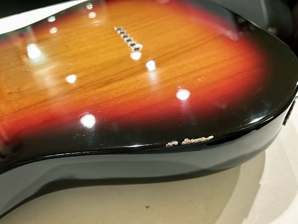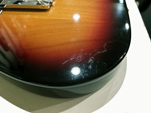 プレイコンディションは良好です。相応に若干の使用感、摩耗点はあるものの、メンテナンス、セットアップ済で、弾きやすく出音良好の、グッドプレイコンディションです。外観的にはトップエルボー部に若干擦り傷が見られるほか、バック側のエッジ部分に塗装剥がれ、その他全体的に使用上の小傷、擦り傷はありますが、大きな目立ったダメージは無く、傷も比較的少なく、まだまだ良好で綺麗なUSEDグッドコンディションです。丁寧にクリーニング、磨きも入れております。ケースはおまけとしてソフトケースをお付けいたします。