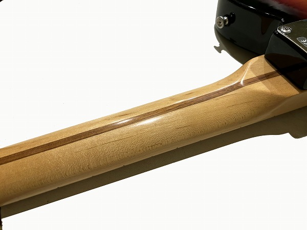 プレイコンディションは良好です。ネックは反りも無く真っ直ぐで良好な状態です。ロッドもまだ余裕があります。フレットは相応に使用感、若干の減りはありますが、まだ7分程度は残っており、大きなへこみや弦溝もありません。弦高ローアクションセッティング済でビビリやつまりも無く、出音良好です。フレットは丁寧に磨きも入れており、光沢も大分取り戻しています。指板も若干の使用感、小傷はありますが、大きなダメージ、大きな減りは無く、使用上も問題無く、指板も丁寧にクリーニングの上、コンディショニングも行っており綺麗なコンディションになっています。全体的にしっかりとメンテナンス、セットアップも施しております。現在弦高は12フレット上1弦1.2mm、6弦1.5mmです。電装系も出音、コントロール共に全く問題ありません。メンテナンス、セッティング済、プレイコンディション良好ですぐにそのままお使いいただけます。