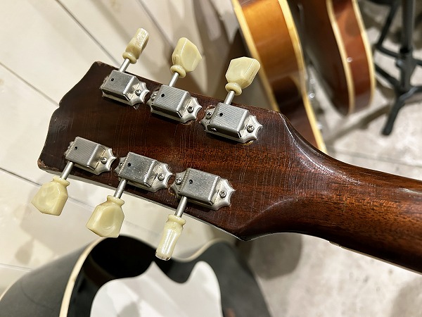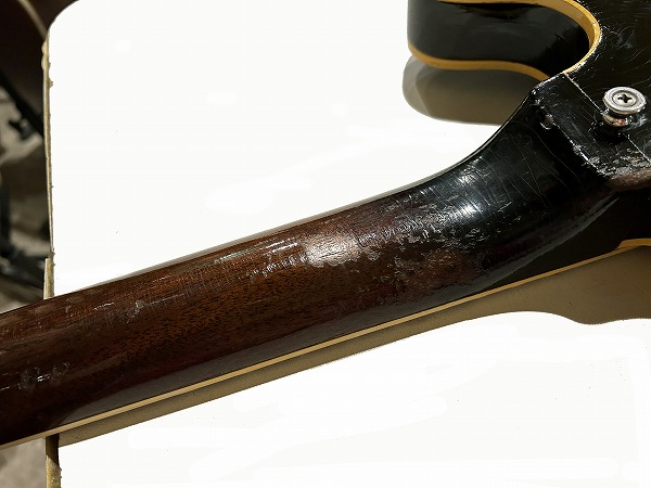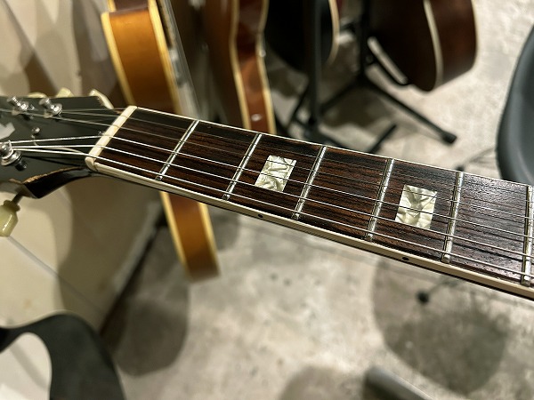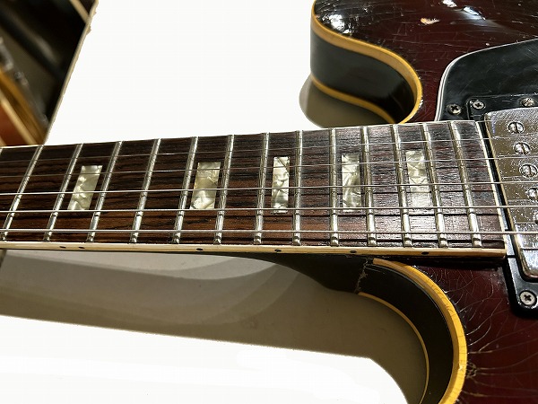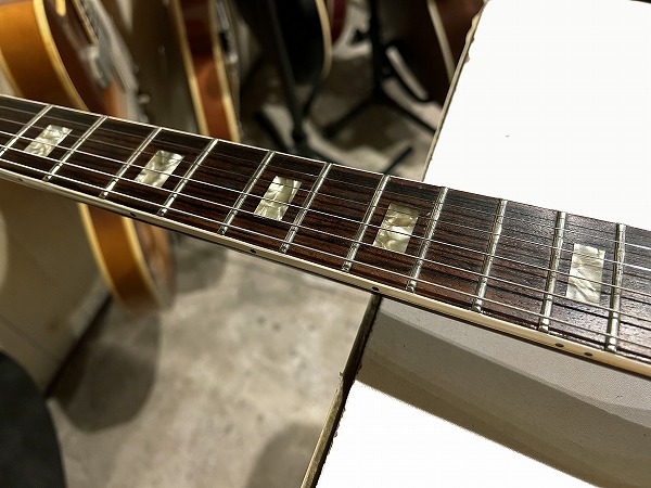 プレイコンディションは良好です。ネックはおそらくどこかのタイミングで熱矯正等のオーバーホールが入っているものと思います。ネックは反りも無く真っ直ぐで良好な状態です。ロッドはまだ余裕があります。フレットは相応に減りあり6分程度と山は低くなっていますが、大きなへこみや弦溝は無く、ローアクションセッティング可能で出音も良好です。フレットは丁寧に磨きも入れており、光沢のある綺麗なコンディションです。指板も相応に減りや傷、経年感が見られますが大きな減りやダメージは無く、こちらも丁寧にクリーニングの上、コンディショニングも行っており綺麗なコンディションになっています。