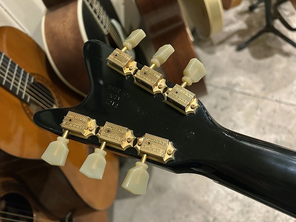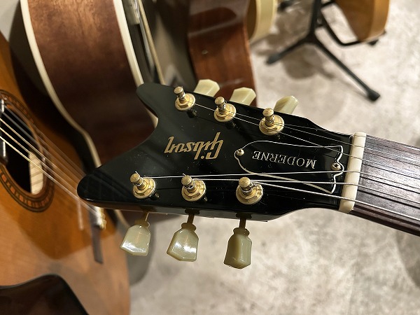 激レアの1本が入荷しました。Gibson Moderne 2012年限定復刻生産モデル、中でも市場数さらに少ないEbonyカラーの1本です。1982年製