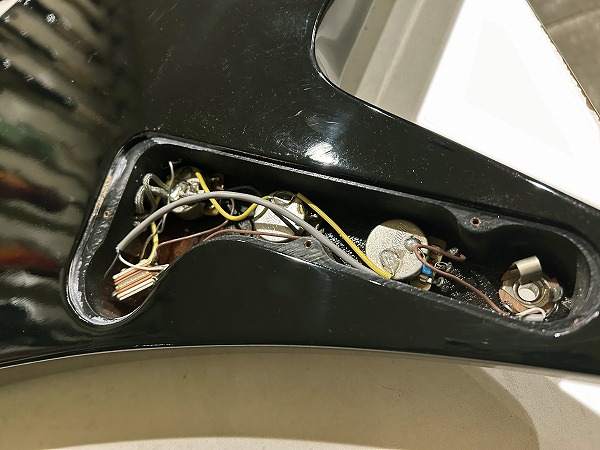 コンディションも良好です。ボディエンド、バック、エッジ部に小さな米粒大塗装剥がれが数か所見られる他、全体的に小傷、擦り傷、金属パーツのくすみ、退色など若干の使用感、経年感はありますが、目立った大きなダメージは無く、まだまだ綺麗なグッドコンディションです。全体的に丁寧にクリーニング、磨きも行なっており、綺麗なコンディションになっております。ネック、フレット、ナット、電装系、ピックアップなどプレイコンディションも良好で、各部メンテナンス、調整、セットアップも施しておりますので、弦高もローアクションで弾きやすく、出音も良好です。ケースは純正ハードケースが付属します。また、前オーナー様が別途オーダー製作されたと思われる木製ピックガードが付属します。