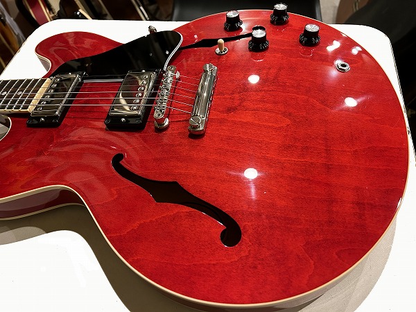 現行Gibson ES-335、Nashville 2021年製、カラーはSixities Cherryの1本です。近年価格もかなり上がっておりますが、クオリティや再現度も高く、人気の高い現行モデルです。現在の新品市場価格は42万程度のモデルです。