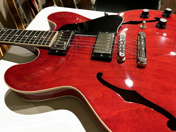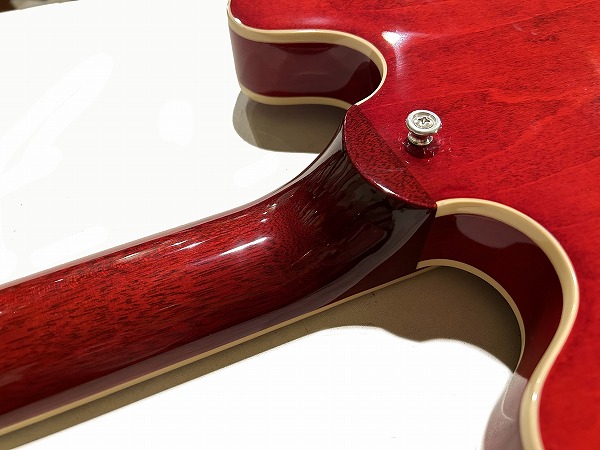 ピックアップにはキャリブレート処理されたT-Type ハムバッキングを搭載。低めの抵抗値でブリリアントかつ艶やかなハイトーンながら硬くなくマイルドで、豊かなローミッド、スイートなトーンが特長で、ヴィンテージライクなトーンを提供します。335ならではのほど良い箱鳴り感、メイプル主体のハリと芯のあるタイトなトーンも持ちつつ、しっかりとしたシェイプのマホガニーネックで、鳴りのファットさとスイートさも併せ持ち、明るさもあり、ヴィンテージテイスト傾向の上質モダン335サウンドを提供します。とてもグッドサウンドな1本です。