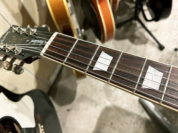 プレイコンディションは良好です。ネックは反りも無く真っ直ぐで良好な状態です。ロッドも十分に余裕があります。フレットもほとんど減り無く、9割がた残っています。指板もほとんど大きな使用感無く良好なコンディションで、こちらも丁寧にクリーニングの上、コンディショニングも行っており綺麗なコンディションになっています。しっかりとメンテナンス、セットアップも施しておりますので、弦高はローアクションで弾きやすく、ビビリやつまりも無く、良好な出音です。現在弦高は12フレット上1弦1.5mm、6弦1.5mmです。電装系も出音、コントロール共に全く問題ありません。メンテナンス、セッティング済、極上プレイコンディションですぐにそのままお使いいただけます。