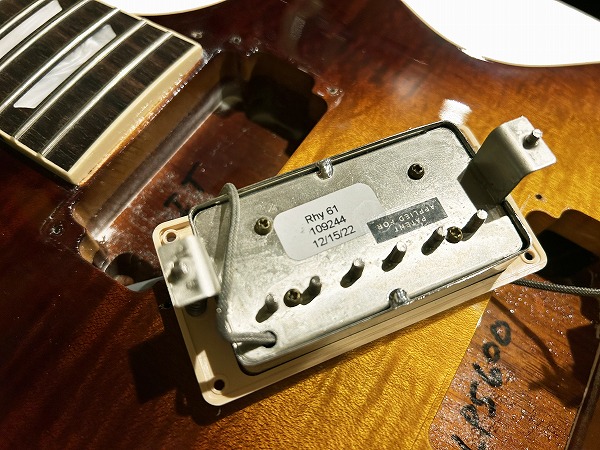 61を搭載。PAF系を踏襲したBurstbucker系モデルの最新型モデルです。こちらはLes Paul Standard 60'sモデル用に開発された新型モデルだけあり、マッチングは最高です。ナチュラルかつセンシティブなピッキングニュアンス、粒立ち良くかつスイートでブリリアントな素晴らしいトーンです。コンデンサーにはオレンジドロップが搭載されています。